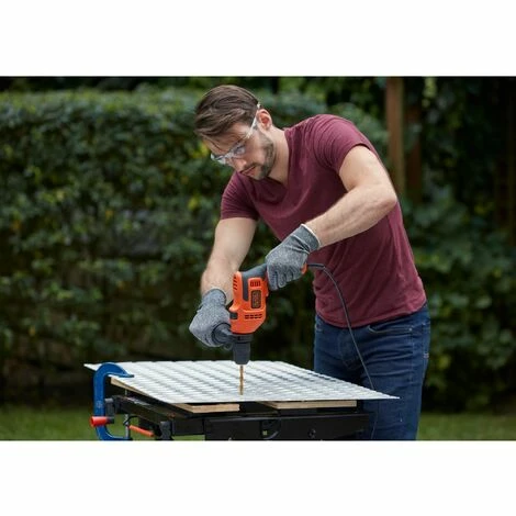 Perceuse à percussion filaire Black+Decker de 500W. La perceuse vous permettra d’atteindre une Cadence de frappe de 49300 coups/minute pour percer jusqu’à 13mm de métal ou le béton et 20mm de bois, le tout avec une vitesse variable pouvant alle jusqu’à 2900 tours/minute. Cette perceuse est livrée avec une poignée latérale pour un meilleur confort d’utilisation.;;
