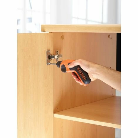 Le tournevis sans fil CS3651LC-QW est un outil de la marque BLACK+DECKER destiné à l’utilisation quotidienne des bricoleurs amateurs. Equipé d’un moteur capable de fournir un couple maximal de 5 Nm, l’outil est idéal pour les travaux de vissage courant tels que le montage ou la fixation de meubles, charnières, étagères et autres éléments de la maison. Disposant d’un mandrin de 6,25 mm, le tournevis est livré avec deux embouts de vissage de type H4 et PZ1, avec respectivement une tête hexagonale et une tête cruciforme. Le remplacement de l’embout est facilité par un blocage automatique de l’arbre, et l’outil est compatible avec d’autres types d’embouts disponibles sur le marché, comme les modèles SL4, PZ2 ou H5. Le tournevis dispose d’une prise en main simple et agréable. L’outil est conçu dans un design compact pour que l’outil se prenne en main intégralement et offre une préhension et un contrôle optimaux. Le tournevis affiche un poids moindre de 0,3 Kg, et la coque est entièrement couverte d’un revêtement en caoutchouc pour accorder une bonne prise lors des serrages. L’appareil est ainsi très facile à manier, et son utilisation prolongée ne nécessite aucun effort même pour les novices de la construction. Le tournevis est alimenté par une batterie lithium-ion de 3,6 V, ce type d’alimentation sans fil garantit une maniabilité sans contraintes, et la taille de l’outil permet de traiter dans les zones les plus restreintes. L’appareil est également doté d’un faisceau lumineux pour éclairer les surfaces de travail les plus sombres afin que l’utilisateur puisse travailler en toutes circonstances.;;
