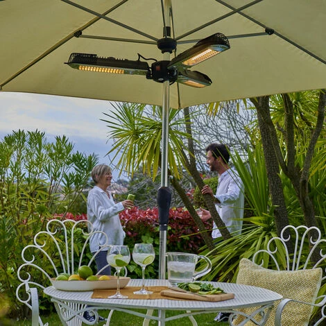 Chaleur agréable : Dès son allumage, profitez d’une chaleur agréable grâce à sa technologie aux rayons infrarouges courts. Que vous vouliez dîner en terrasse, boire l’apéritif dans votre jardin ou votre véranda, vous n’aurez plus à écourter vos soirées à cause du froid. Lorsque les températures baissent, allumez simplement le parasol chauffant en appuyant sur le bouton, et choisissez le niveau de puissance en fonction de vos envies. Il cible les objets et personnes qui l’entourent.