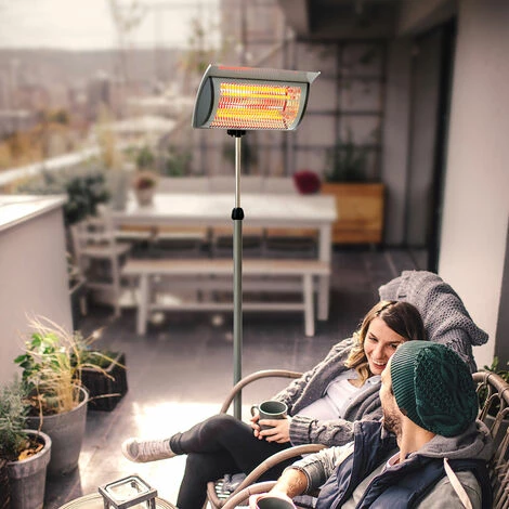 Pratique et sécuritaire : Facile à monter et à déplacer, ce parasol chauffant peut être installé partout. Il vous offrira une chaleur en permanence et là où vous le souhaitez ! Son allumage manuel est très pratique. Vous apprécierez son démarrage rapide et sa hauteur réglable. Son coupe-circuit et son indice de protection IP44 vous assurent une utilisation en toute sécurité. Il est protégé contre l’intrusion de corps solides et les petites projections d’eau provenant de toutes les directions. Il s’éteint automatiquement en cas de chute ou de basculement. Sa structure en acier peint le rend solide et durable. Il résiste à une utilisation extérieure quotidienne. Pour préserver efficacement votre parasol chauffant, il est livré avec sa housse de protection.