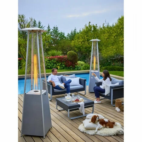 PARASOL CHAUFFANT FLAMME PReT a L’EMPLOI AVEC HOUSSE DE PROTECTION, TUYAU ET DÉTENDEUR PROPANE NF